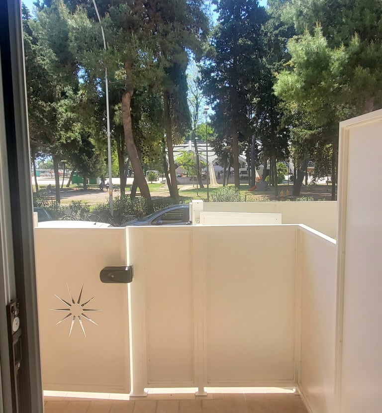 Ogni appartamento è dotato di un piccolo patio vista sulla pineta fronte Lido di Civitanova Marche per il relax.